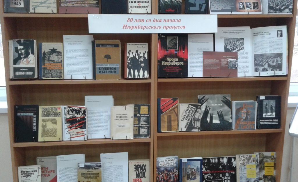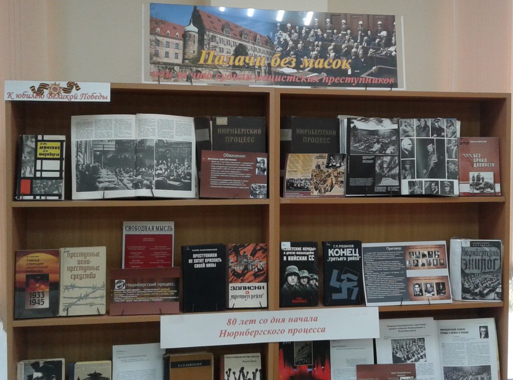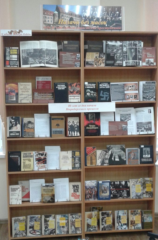 В рамках юбилея Великой Победы Научная библиотека подготовила выставку «Палачи без масок, или За что судили нацистских преступников», посвященную началу настоящего Суда истории над фашизмом – Нюрнбергского процесса. Выставка экспонируются в Отделе обслуживания № 1 Научной библиотеки (ул. Ломоносова, д. 81 Д, корп. 1, Учебный корпус № 16 (Южный), читальный зал, ауд. 119).