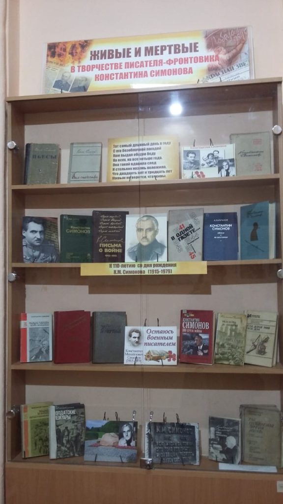 28 ноября 2025 года советскому поэту и прозаику Константину Симонову исполнилось 110 лет со дня рождения (15 (28) ноября 1915 – 28 августа 1979). Библиотека подготовила мероприятия, посвященные 110-летию со дня рождения писателя-фронтовика Константина Симонова.