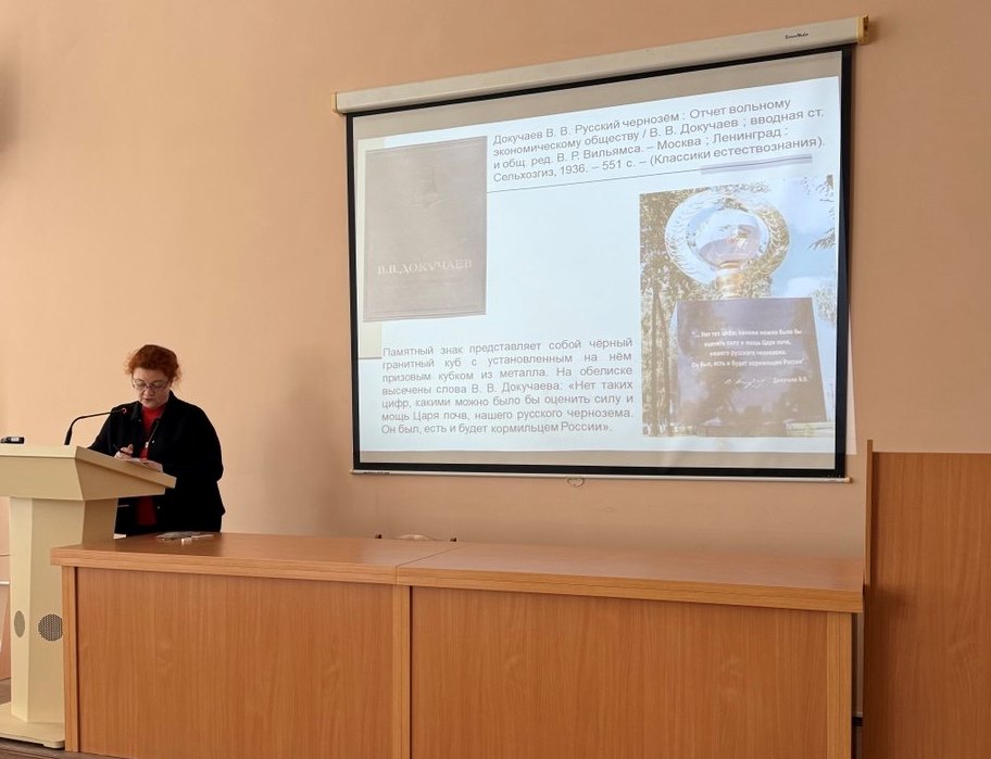 5 марта 2026 года в Воронежском ГАУ прошло мероприятие, посвященное основоположнику русского почвоведения В. В. Докучаеву. Заведующий сектором Научной библиотеки Е. В. Рощупкина выступила с докладом.