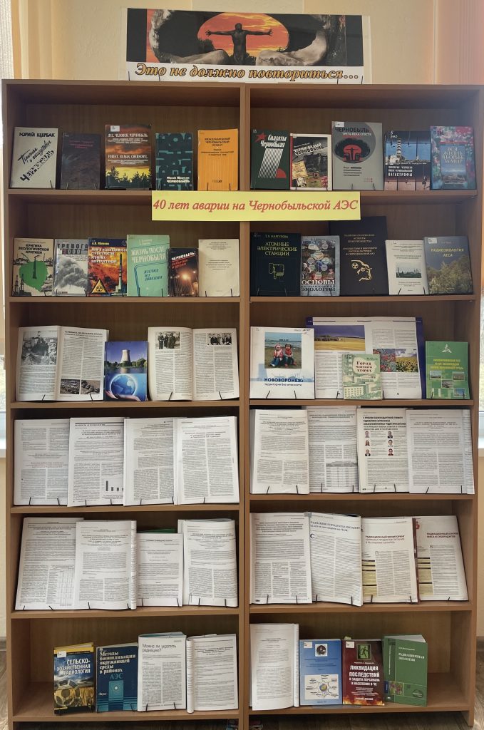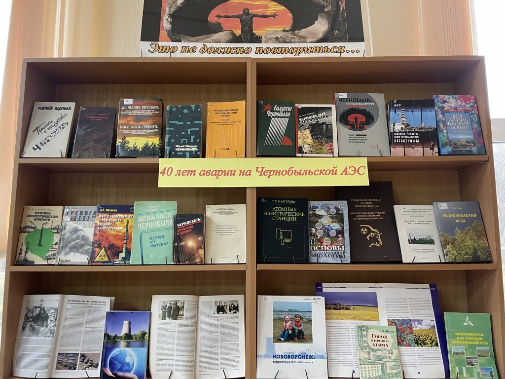Ко Дню памяти о Чернобыльской катастрофе (26 апреля 1986 года) Научная библиотека подготовила тематическую выставку «Это не должно повториться…», которая экспонируется в Отделе обслуживания № 1 Научной библиотеки (ул. Ломоносова, д. 81 Д, корп. 1, Учебный корпус № 16 (Южный), читальный зал, ауд. 119).