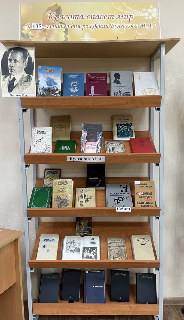 На выставке «Красота спасет мир», посвященной юбилею М. А. Булгакова, представлены произведения писателя и литература о нем и его творчестве.